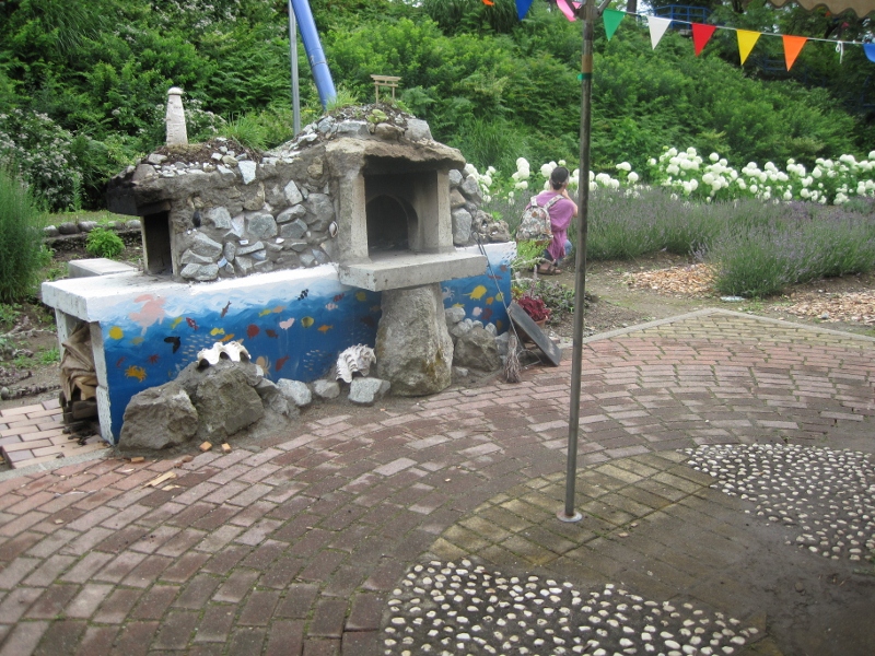 ガーデン内には、石釜も。なぜか、鳥居とカッパドキアが乗っていた(笑) ガーデン内は、300円でハーブ摘み取りも行っていて、みなさん真剣に選んでました。右下の白いお花?もハーブなんでしょうか??摘んでる方がちらほら。 )、『atelier.soeur』にて、オーガニックコットン(裏)とリバティ柄(表)のハンカチ(フォーマル用にと作成されたそうです )、それから、『きなりブロード』の脇にコーヒーがあったので(ごめんなさい、お店名が・・・)、いただこうと思ったら、店主がいなかったり(笑)、フィルターがなかったりで(笑)、ほんわかしました。ネットで検索したところ『sui cafe』さんのコーヒーようですが。コーヒーを参っている間、ハーブガーデンを散策に・・・。